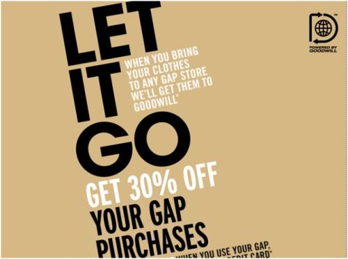 In addition, when you bring clothing or household items to your local Goodwill, you can get a 30% OFF Gap coupon (while supplies last) as well.