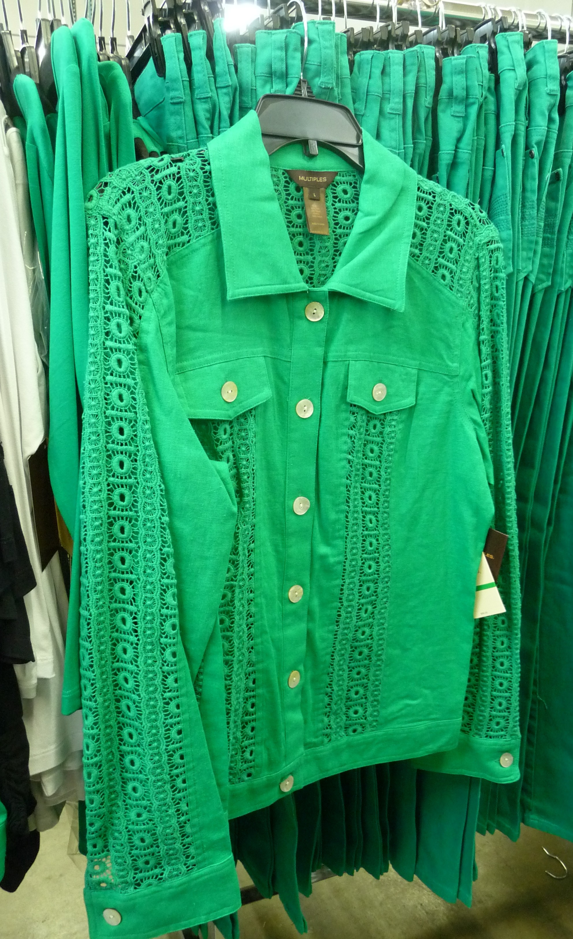 :: Ladies, this is a fantastic Spring Fling treasure hunt! We found lots of fun bright “show-stopper” statement pieces as well as lots of go-with-just-about-everything basics. This sale has rows of Spring & summer tops, super flattering dress and casual pants, Tru Luxe jeans, jackets, crop pants, and shorts in fun bright solid pops of color.