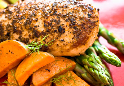 3.  Bake until a thermometer inserted in the thickest portion of the meat registers 160°F and the juices run clear (about 10 more minutes).
